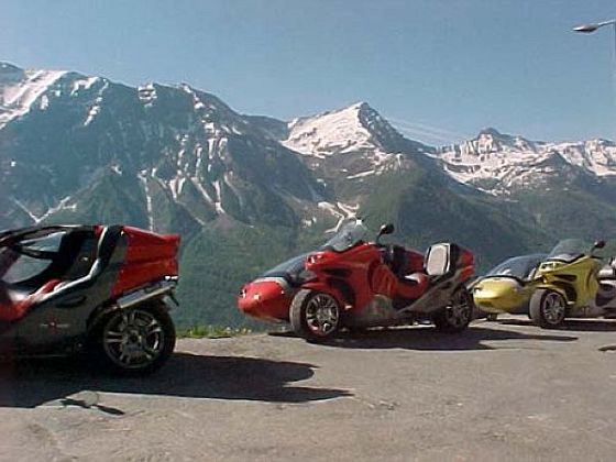 Afin de le prouver, et comme je vous le disais en première page, je vais vous parler d'une autre forme de trike sur lequel on est assis comme sur une moto, celle des trikes qui possèdent deux roues à l’avant et une à l’arrière, qui sont dénommés "trikes inversés". La motricité peut se faire soit par les roues avant, soit par la roue arrière, ce dernier exemple étant celui qui s’applique au trike “Spyder” de chez CAN-AM, appellation commerciale appartenant à la société B.R.P (BOMBARDIER Recreative Products), basée à VALCOURT, au Québec, province francophone du Canada. L'appellation CAN-AM provient certainement de la contraction de CANADA-AMERICA, le Canada étant situé sur le continent américain que nous aurions trop tendance à limiter aux seuls U.S.A.