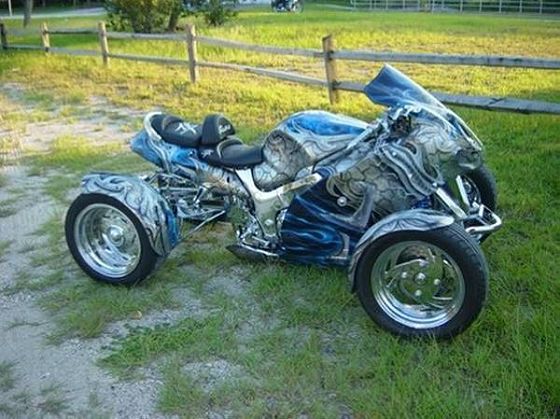 … ou celui-ci, de marque SUPERTRIKE, fabriqué à LAS CRUSAS, aux U.S.A, dans l’état du Nouveau Mexique, dont a publicité annonce : “Imaginez 249 chevaux entre vos jambes !”. (www.v-8trikes.com).